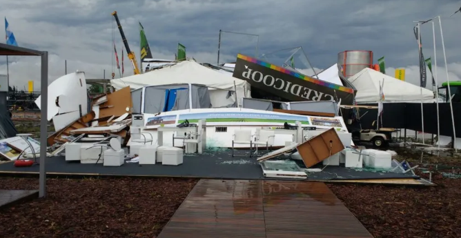 Estos fenómenos de fuertes tormentas y vientos han provacado en varias oportunidades, que se repite casi cada año, provocando destrozos en muchos de los stands de la muestra y pérdidas importantes.